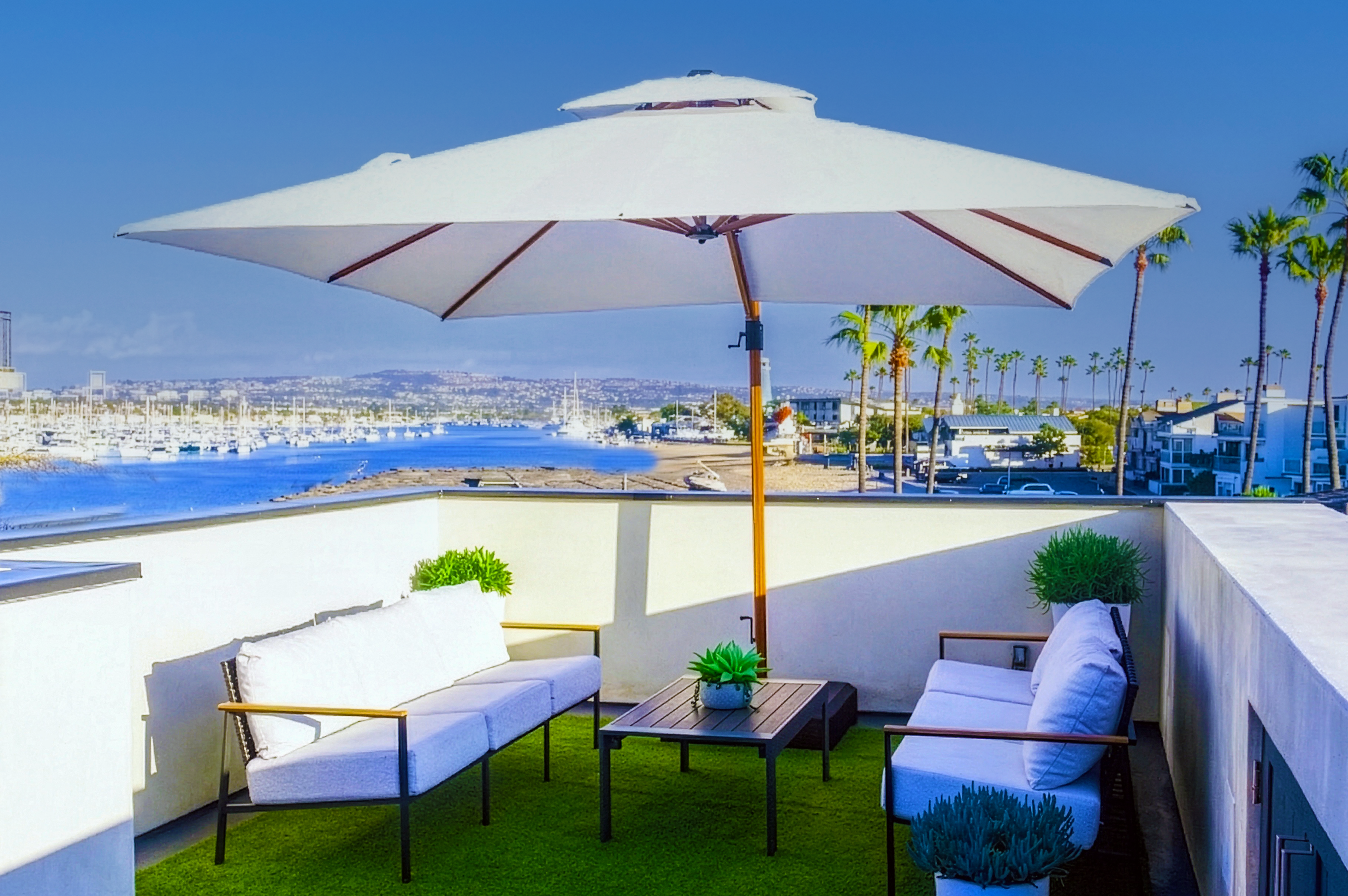 Harbor Lookout — Private rooftop deck with panoramic harbor views, chef's kitchen, and A/C throughout. Sleeps 6.